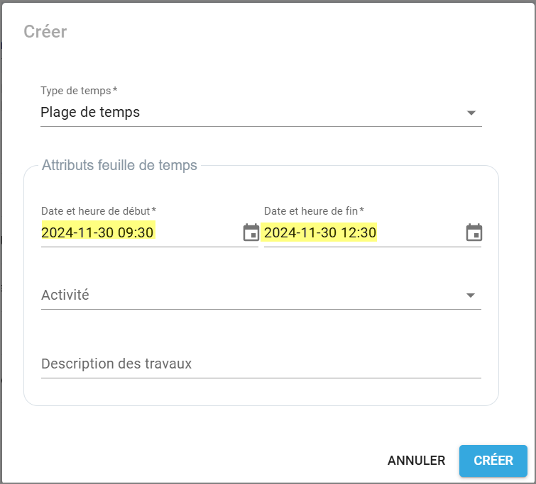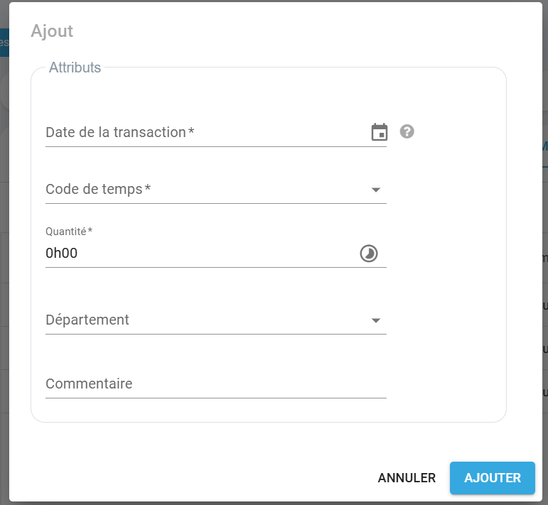 Entrer une quantité avec votre clavier ou bien en cliquant sur les flèches à côté des heures et des minutes. Elle peut être négative au besoin.