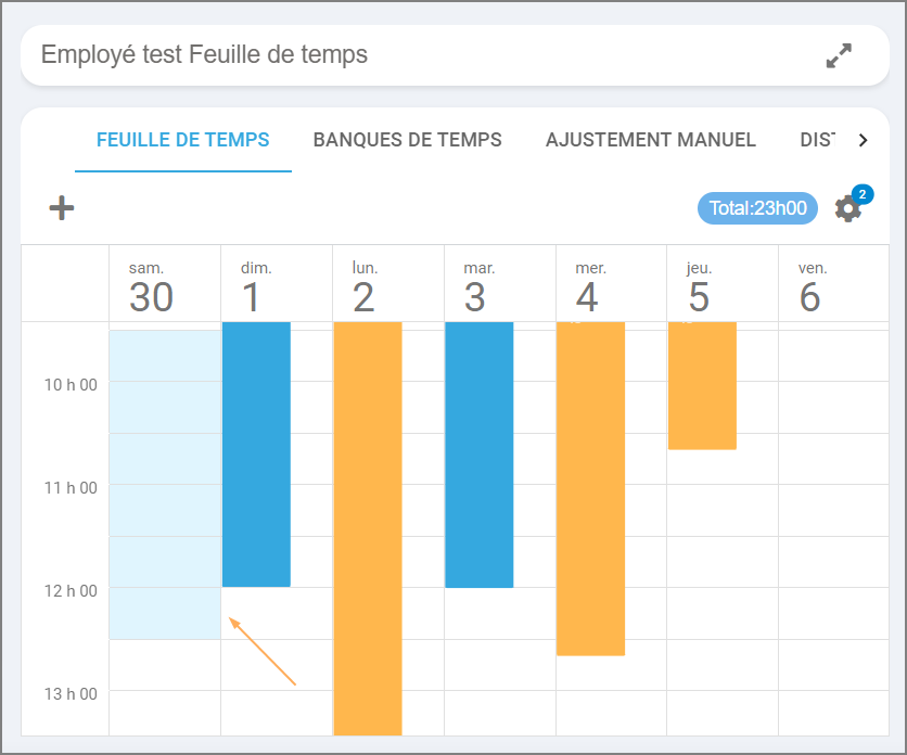 Vous pouvez effectuer les mêmes actions que vos employés sur leur feuille de temps, notamment :