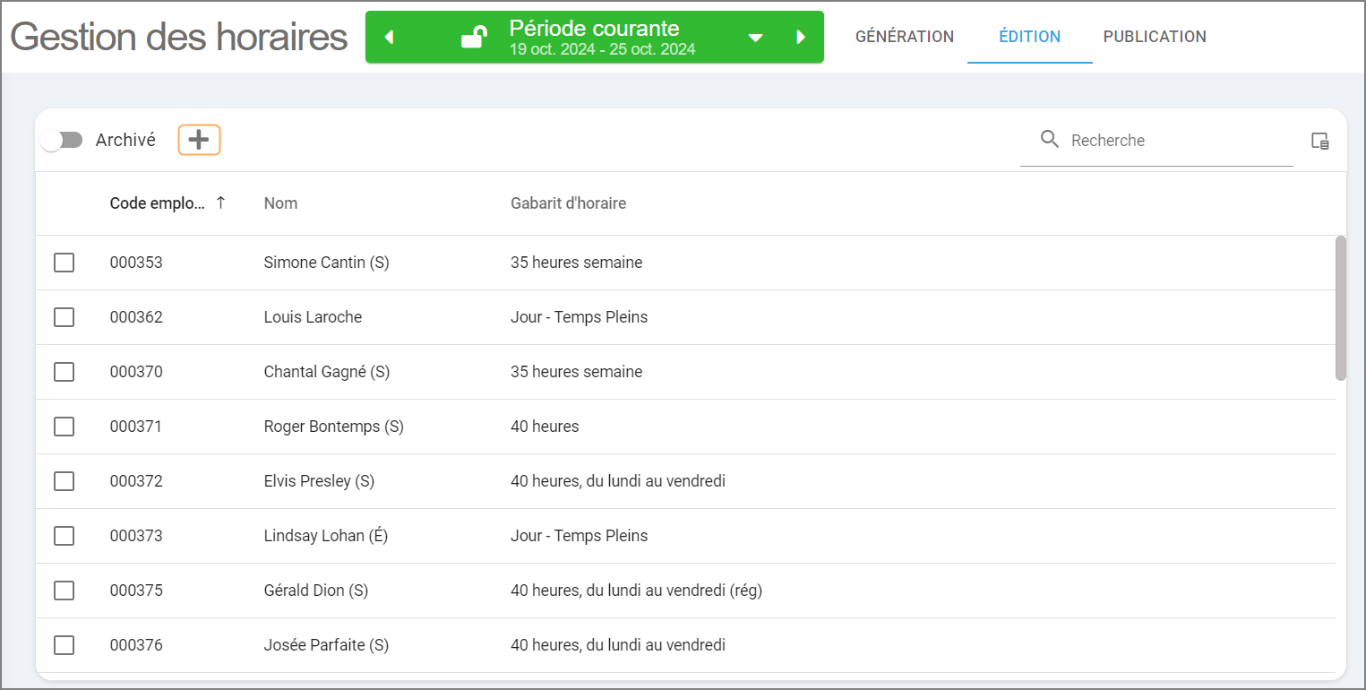 La modification de l'horaire de ou des employés n'est pas récurrente de semaine en semaine, cela est une situation exceptionnelle. Dans ce cas, il faut modifier l'horaire de ou des employé(s) en question directement à même l'onglet Édition dans la section Gestion des horaires et nous ne ferons aucune modification quant à son gabarit d'horaire.