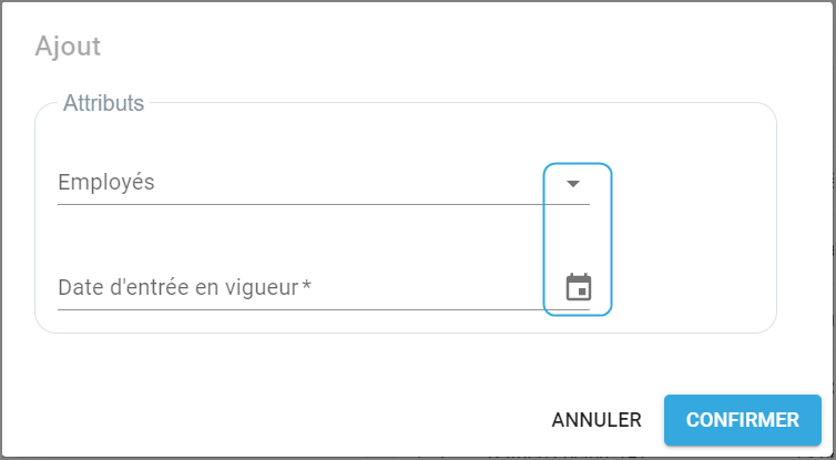 Enfin, veuillez indiquer la date d'entrée en vigueur de ce gabarit pour le ou les employé(s) concerné(s).