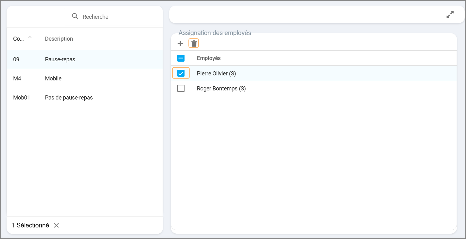 De la même façon que vous avez assigné un employé à la borne mobile, en le sélectionnant, vous avez également accès à l'icône de poubelle afin de supprimer cette assignation.