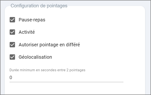 Après avoir saisi les informations générales, personnalisez les configurations de pointage selon les besoins spécifiques de votre entreprise.
