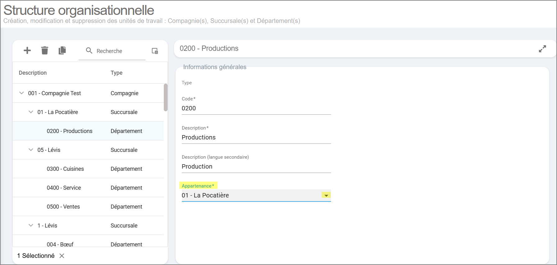 Élément de la structure organisationnelle auquel se rattache cet élément (Compagnie et/ou succursale)
