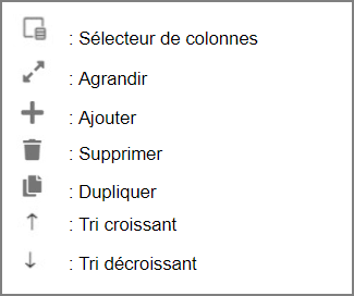 Accédez à la page Structure organisationnelle via la section Administration du menu principal puis cliquez sur l'icône correspondant à l'action désirée, en haut à gauche de la fenêtre active.
