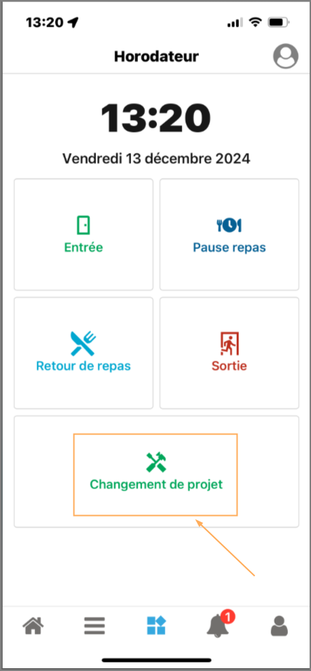 Sur la borne, vous pouvez effectuer un changement de projet à tout moment. Les heures se calculeront ainsi dans les bons projets en fonction de vos sélections.