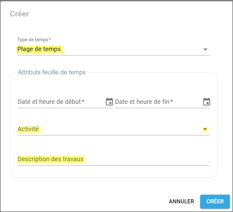 Si le module activité est actif pour votre organisation, les champs vont automatiquement s’ajouter dans le formulaire d’ajout en fonction des noms des éléments que vous aurez configuré dans vos niveaux d’activité.