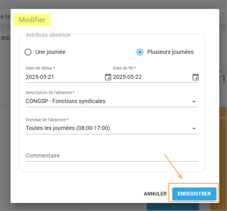 Choisissez si l’absence concerne une seule journée ou plusieurs journées consécutives.