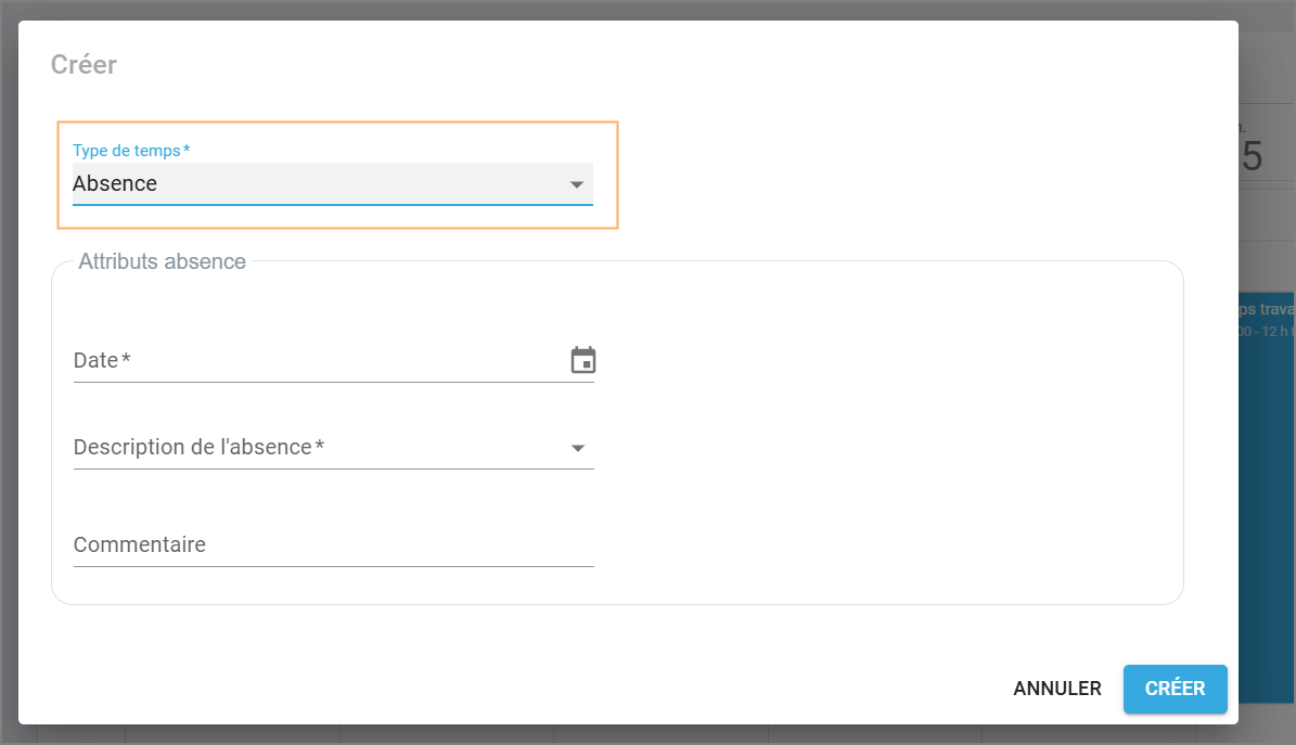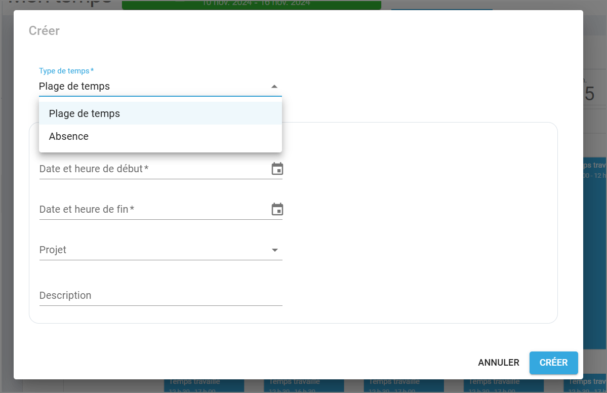 Type de temps : Plage de temps ou absence